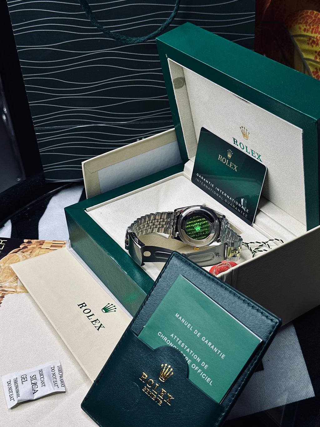 Experience luxury with the Rolex Date-just Iced-Tone, a stunning timepiece crafted with premium finishing and a dazzling iced-tone design. Perfect for women who love sophistication, this watch adds a touch of glamour to any outfits be it casual, formal, or festive. A symbol of class and elegance, it’s an ideal choice for gifting or personal wear.